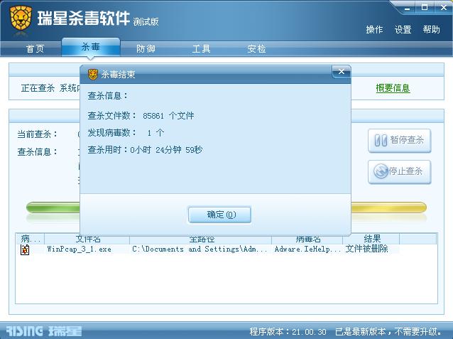 我先用的2008把C盘杀了毒一次,在谢了2008,安装2009测试班的,用2009也扫了C盘一次!结果如下:
