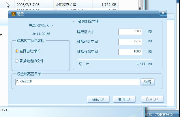 病毒隔离系统,我认为存在两个问题:第一个,设置空间总是在最前面显示。第二,如果设置空间选择无限加长,右面空间的设置应该改为不可用状态,现在还可以进行随意设置。