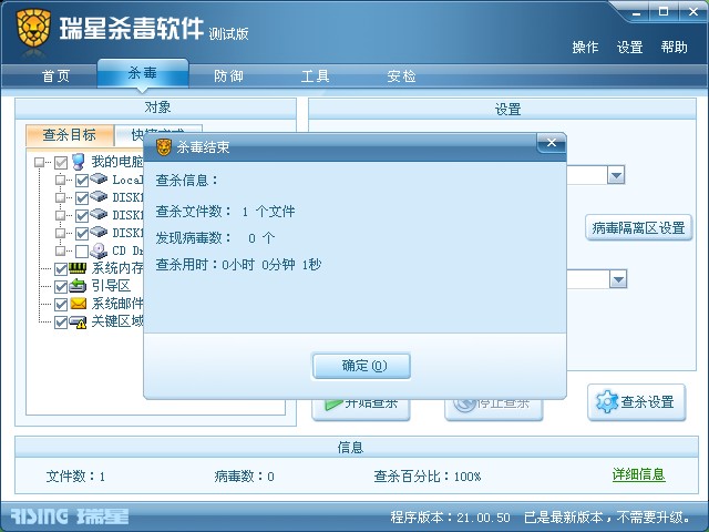 瑞星的右键扫描 分文 详细信息 和概要信息 当用户选择了 详细信息后查毒完毕后仍然会跳转到概要信息 这样会出现卡机的状态 希望瑞星改进一下 如果用户选择了详细信息 就没必要查毒后仍跳转到概要信息界面!