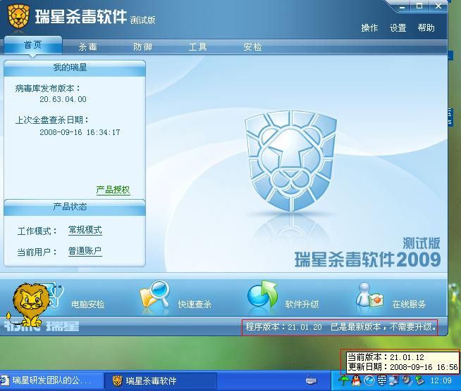 杀毒软件主界面上显示的版本号和右下角鼠标提示版本号不符