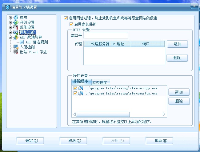 PS:[排除程序]相当于防火墙的[白名单],也就是说禁止访问某个网页,但是当白名单里的程序访问时,也会允许访问的。