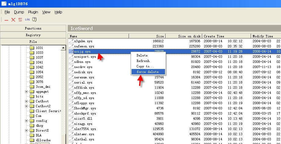 有了SSM的这些监控信息,用IceSword处理此毒就比较容易了。
