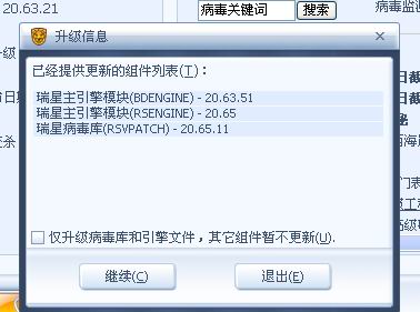 回复:升级瑞星的时候显示了“更新组件”再点“继续”就没反应了