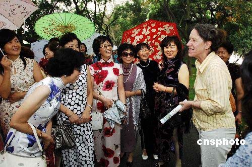 10月22日,100位上海闵行区古美旗袍沙龙的中老年女性,身穿款款美丽的旗袍来到杭州西子湖畔,在美丽的西湖边展示中华民族优秀的服装文化,宛如一道醉人的美丽风景,这种流动的古典美与天然的西湖美融为一体,引得中外游客们啧啧称美。