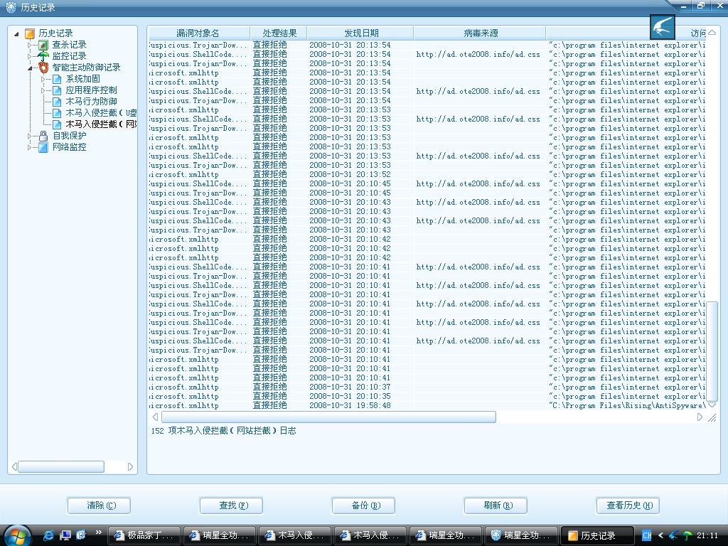 每打开一个网页就报七八个木马,而瑞星都是采用弹出窗口式的通知,改都改不了,看网页看得很郁闷,有毒有木马你就杀吧,不要弹出来影响我看东西,或者是可以改通知方式也行啊。这个都搞不定你还做个什么杀毒软件。我把系统重装乃至把整个硬盘都分区,安装盘也换掉还是这个现象,IE6,IE7都试过了,没装瑞星就啥事都没有。2008版也是一样的报,我不知道是什么原因了,按照杀毒软件所说的他的官网上也挂了木马了,也不能看。原来自已的网页都防不住,还说帮我们这些广大的用户。