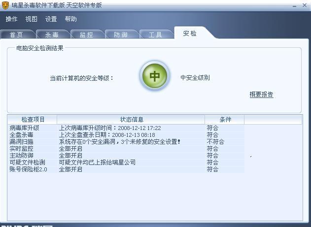 电脑安全检测的6个检测项目就"漏洞扫描"是"不符合",其他5项都是"符合"的.病毒库都是最新的,刚杀完毒..