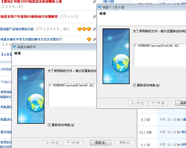 回复: 最近瑞星总是更新mfc42.dll文件,每次都要重启电脑。