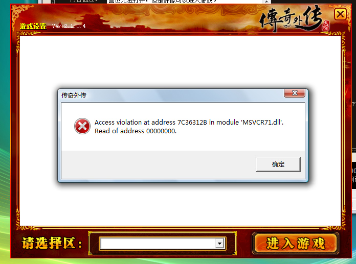 今天升级了瑞星之后 开游戏提示:Access violation at address 7c36312B in module 'MSVCR71.dll'.Read of address 00000000.