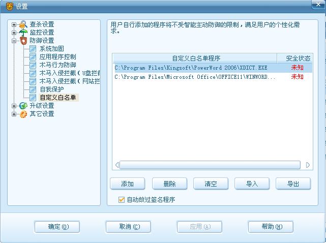 那个加号下面就是金山词霸的主程序,加入白名单了没有用