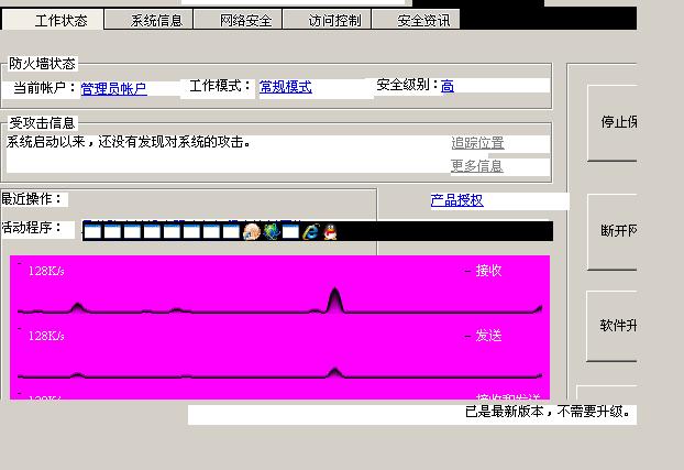 下载安装后,防火墙的界面就变成下图的样子了,第二张小图是我找到设置>>切换皮肤后的界面!!