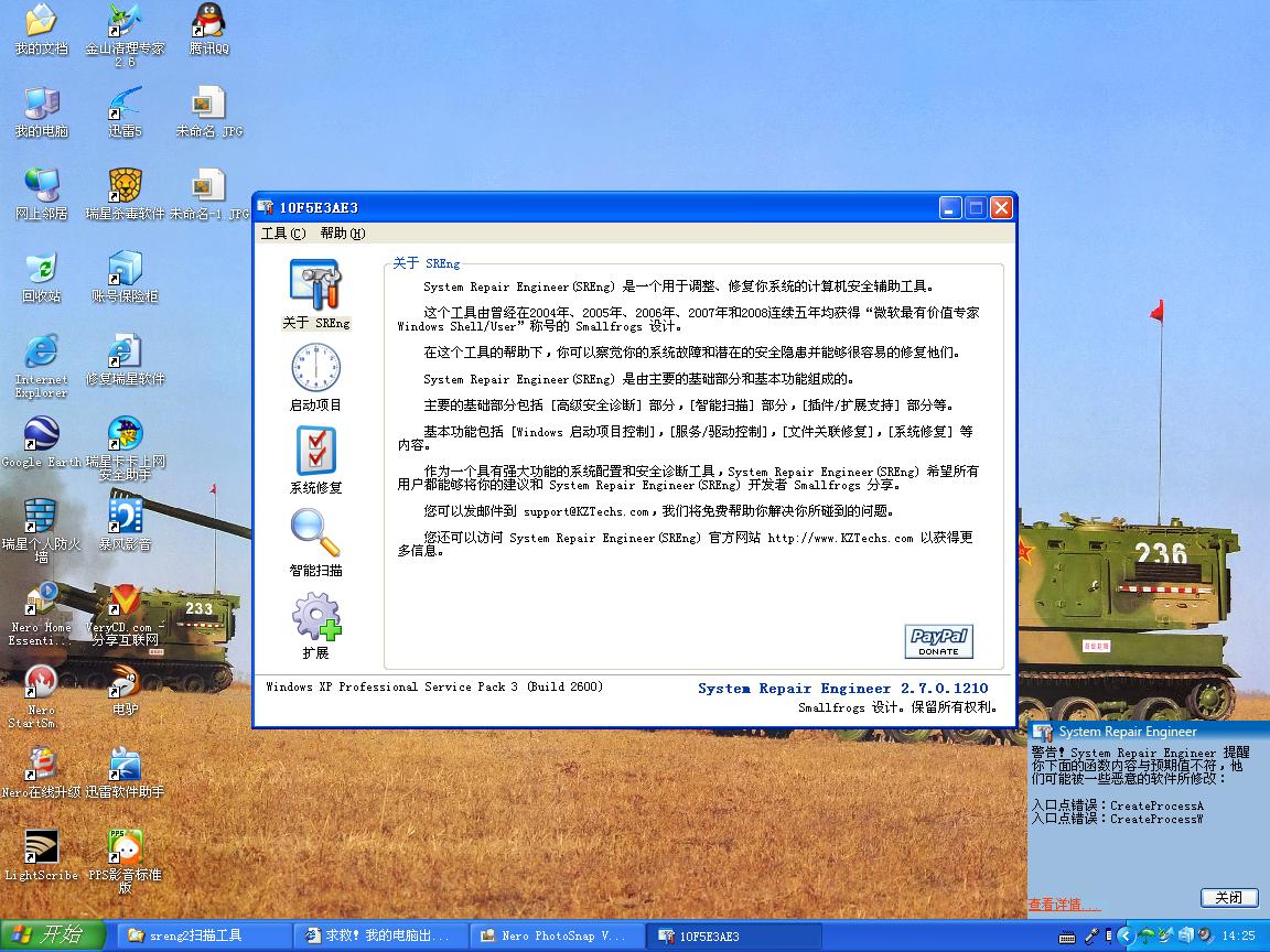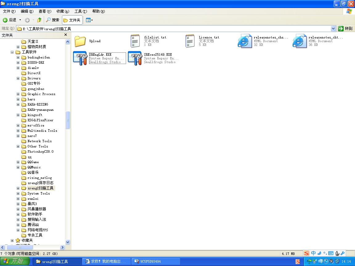 networkedition 大侠,不好意思又要打扰您。您给的下载地址,我选的本地高速下载,下的SRENG2.ZIP的压缩包,解压缩后无论是点开压缩包还是将里面文件解压缩到新文件夹里,都没有SREngPS.EXE文件,而是SREngLdr.EXE文件,如附件而运行该程序后,出现了警告提示说有端口被修改,点击显示详情后出来一个列表框,同时出现SREcec25149.EXE文件,而如果按列表提示点击“修复入口点错误”,则提示修复过程中有可能当前进程崩溃,请问这是怎麽回事?是不是不用理会端口错误问题,直接在10F5E3AE3界面直接选择相应选项开始扫描;还是我的压缩包下载一开始就有问题,需要重新下载?请帮忙解答,谢谢