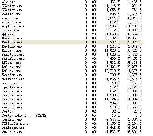 今天不知道怎么了,电脑很卡。连瑞星防火墙都自动重启,看了一下任务管理器里面有很多
