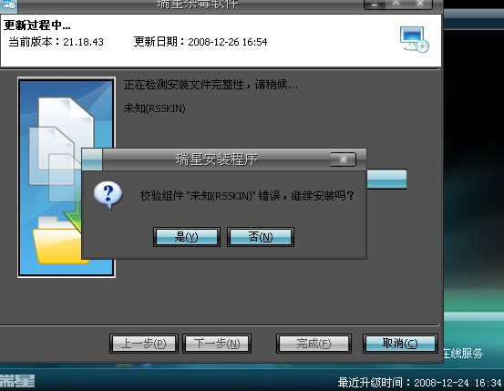 我的瑞星版本是12月24日的下午的版本,昨天一整天都没上网。