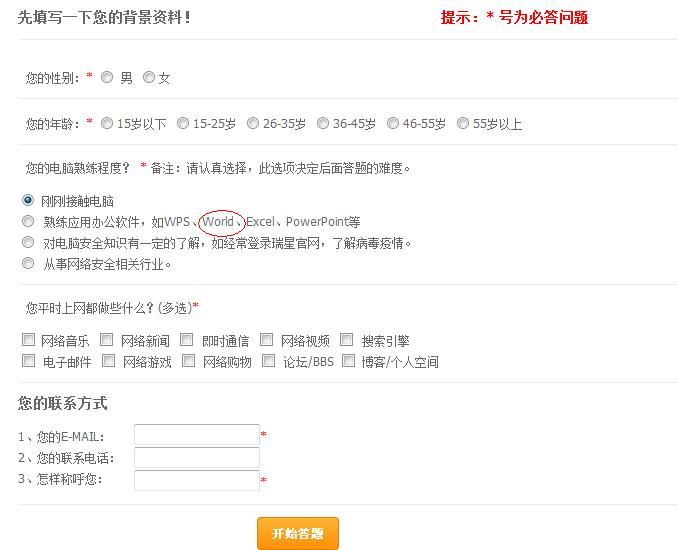 瑞星官方网站上的有奖调查中的,是world还是word?