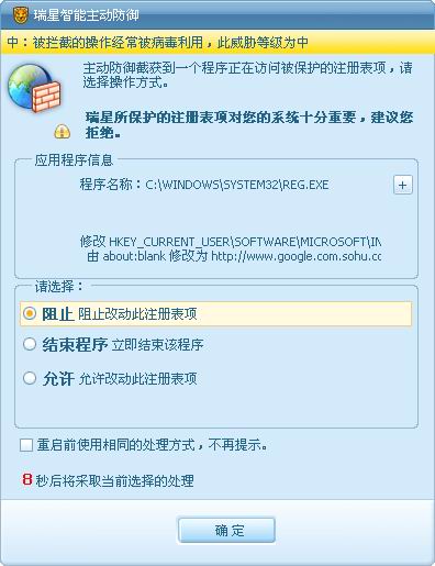HKEY_LOCAL_MACHINE\SOFTWARE\Microsoft\Internet Explorer\Main\Start Page虽然瑞星能挡住,不让注册表被修改,可是每次开机这个都跳出来好几次,很烦呃....我试过把reg.exe删掉,但是删除不能,每次粉碎掉之后刷新又出现了...请问这问题怎么解决,谢谢。
