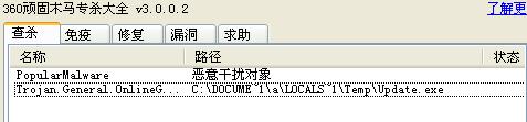 但怎也找不到“文件名: C:\DOCUME~1\a\LOCALS~1\Temp\Update.exe”这个文件。