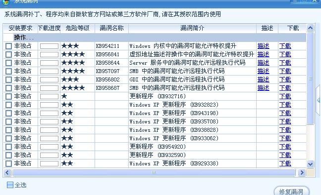 现在不怎么打漏洞补丁 因为系统不是正版的 所以有可能打了补丁系统就出问题 所以高手看下 哪些能打,哪些打了会出问题 麻烦了