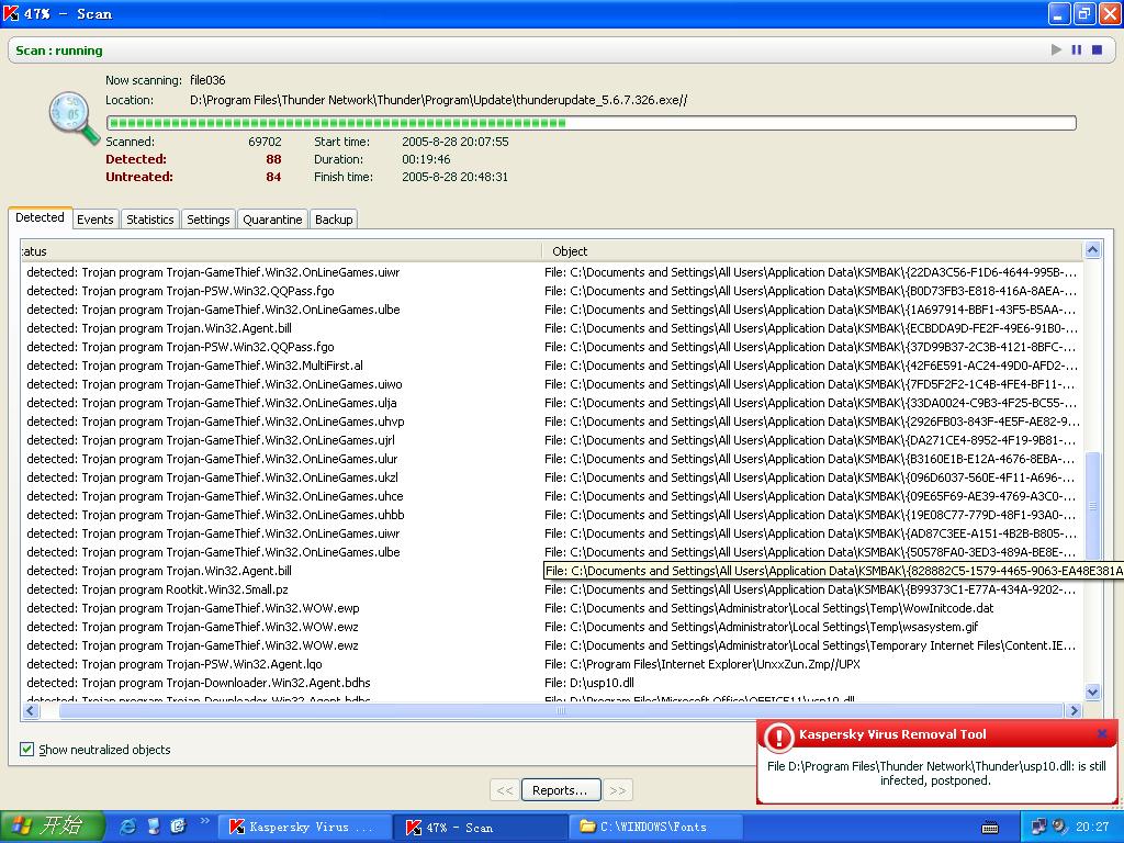 deleted: Trojan program Trojan-PSW.Win32.Agent.lqp File: C:\WINDOWS\Fonts\ctm04002.ttf