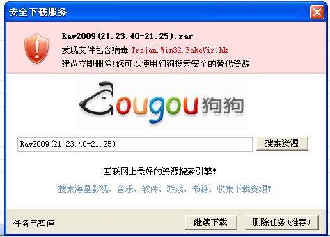 [求助] 我手动下载2月9日的瑞星杀毒软件升级包,怎么GOUGOU报毒??
