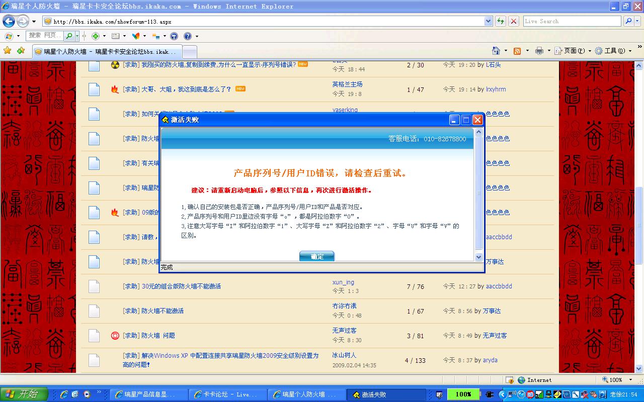 提示就是序列号和ID错误。无论我从瑞星网站拷贝进去还是手动输入进去都不行。经检查n次,没有输入错误
