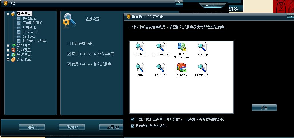 呵呵,多谢了,我这些都设置了,而且查看了嵌入式查杀的文件类型,压缩文件也是钩选了的