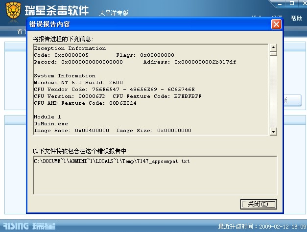 瑞星2009测试版问题反馈