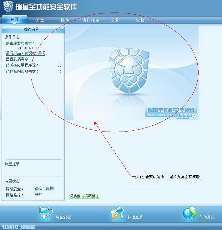 [求助] 瑞星全功能安全软件最大化后,出现这样的问题,见图.