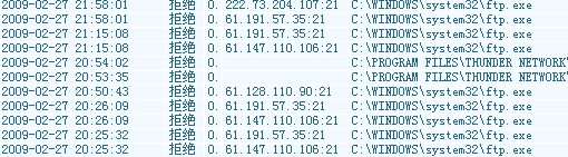 定时从用FTP.EXE从 61.191.57.35    61.147.110.108  下载木马  我现在用防火墙把FTP.EXE禁止了!