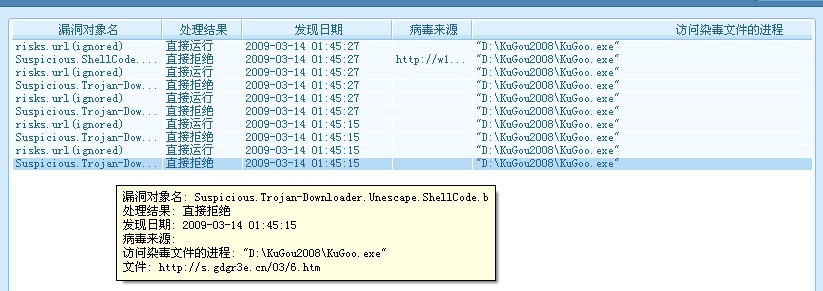 昨天晚上打开酷狗发现有木马入侵,还好我安装了瑞星被