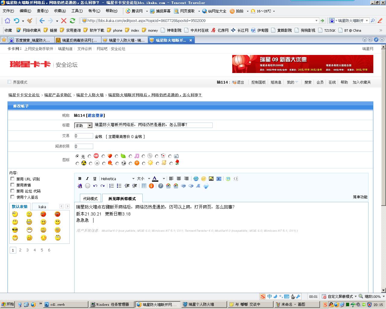 我现在就是选的断开网络,防火墙图标显示有个红叉,但我还可以回复,