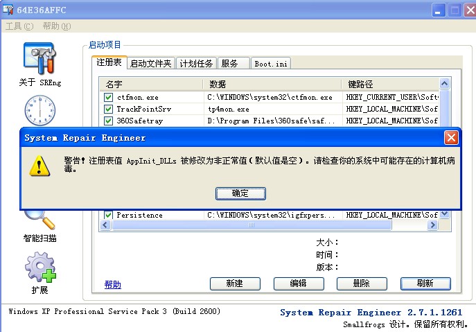 仍然不行,启用SRENG2,显示入下图,查看是瑞星卡卡