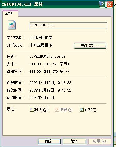 鉴定可疑文件:首先搜索出来的文件,与WSyscheck在Explorer.exe里进程模块中列出来的对比一下,如果搜索出来的有EXE的文件,则查看他的属性,看看有没有版本信息,并且创建/修改时间是否和其它可疑文件是一致,如果没有版本信息,且创建时间一致,则一般都是可疑文件了