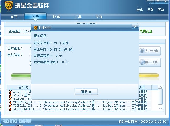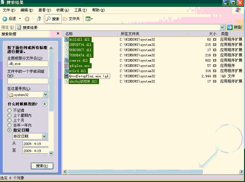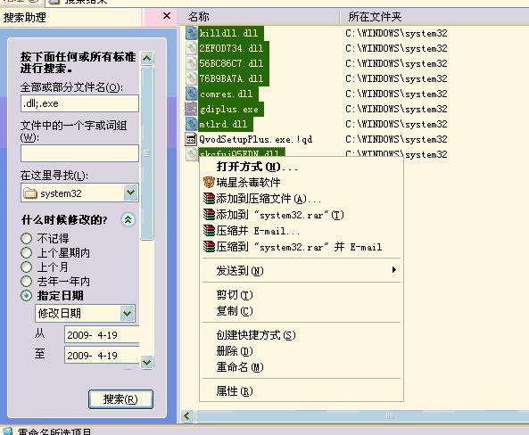 这些是那些重命名之前的DLL经过扫描后的情况(建议是杀毒软件能杀的就让他杀掉,如果病毒是新的杀不掉的,建议上报给杀毒软件,为其他的人们作点贡献吧,让他们不再中类似的病毒):