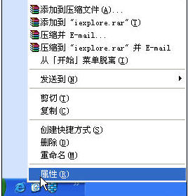 出现这种问题时,可以先右键点击快速启动工具栏中的IE图标--属性--快捷方式--目标,如截图: