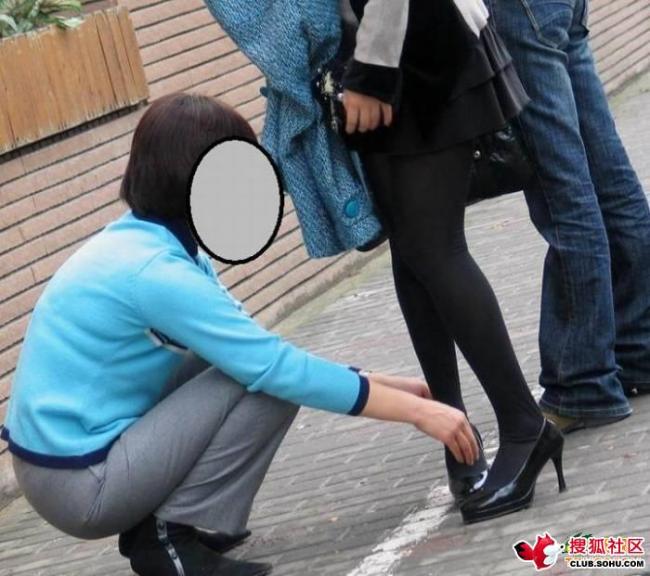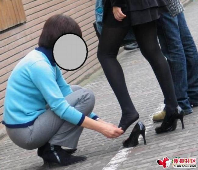 脑残女当街要亲生母亲帮自己整理丝wa(组图)