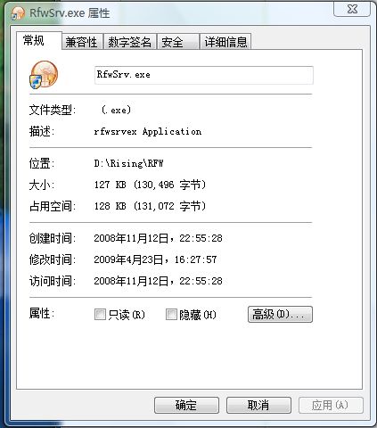 文件路径:d:\Program Files\Rising\RFW\rfwsrv.exe