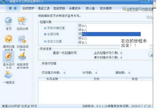 [求助] 查杀流行木马的查杀按钮在哪儿?