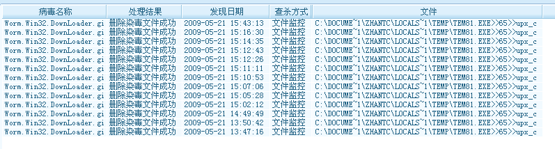 下载后用昨天刚更新的最新瑞星杀毒,显示没有病毒。结果安装后,瑞星被强制关闭,所有盘里面的几乎所有可执行文件都被感染名为