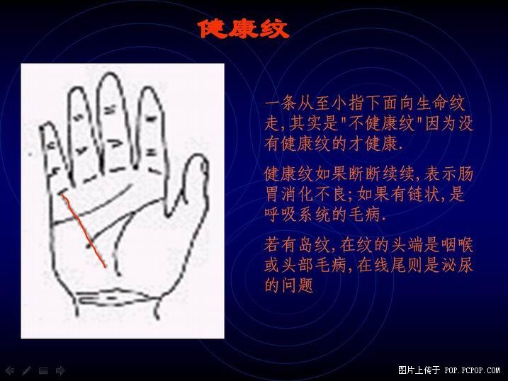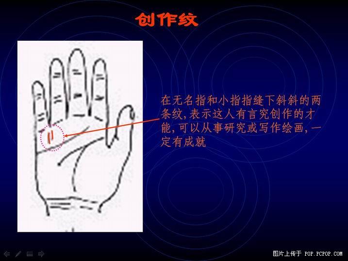 脑纹上有岛纹就表示思想不集中,记意力弱或脑部受挫.