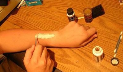 准备材料“红色墨水”“菜瓜布”“白乳胶”“牙签(细状都可以)”“棉花棒”。(红墨水不像的话也可用动物血)