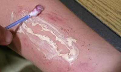 用棉花棒沾点红墨水(一点就好)涂抹在四周制造擦伤的痕迹。