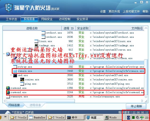 瑞星防火墙托盘图标进程RsTray.exe消失