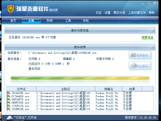 以上病毒瑞星均无法清除,结果为“杀毒失败”,然后迅速的变为“不处理”。如果用户没有注意看,就认为瑞星根本没去处理这些病毒。这个问题需要解决一下。为什么这么多病毒都无法清除?