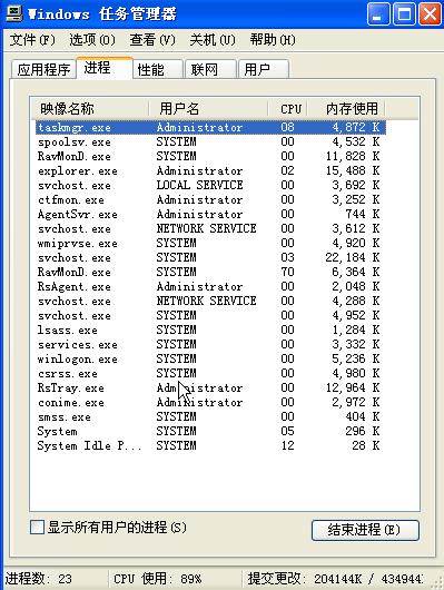 发现结束掉了(用WINDOWS自带的任务管理器)