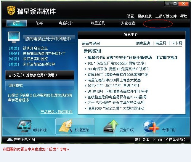 例如:小A在“反馈”这个平台问贵公司的工作人员这样一个问题,“什么叫2010版瑞星杀毒软件?”