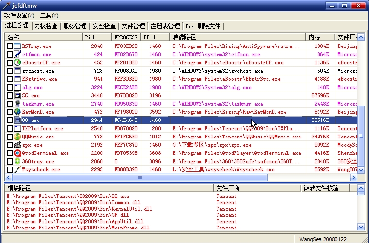 从图得知,中级引擎加低启在15分钟杀毒时间中,扫描文件42375个,杀到病毒2个,第一个为冰河(之前暴力测试的残留物...汗...),第二个好像是360保险柜的残留物...(现在用瑞星保险柜,不用奇虎了),这个去网上查了下,应该是属于误杀,瑞工把样本拿去分析下!尽快解决!