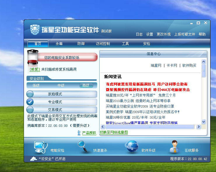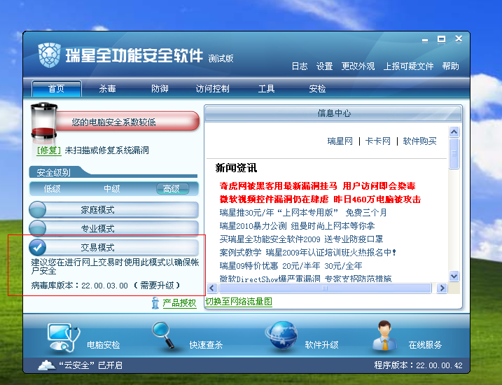 电脑重启后进入瑞星2010的提示设置,一共五个选项