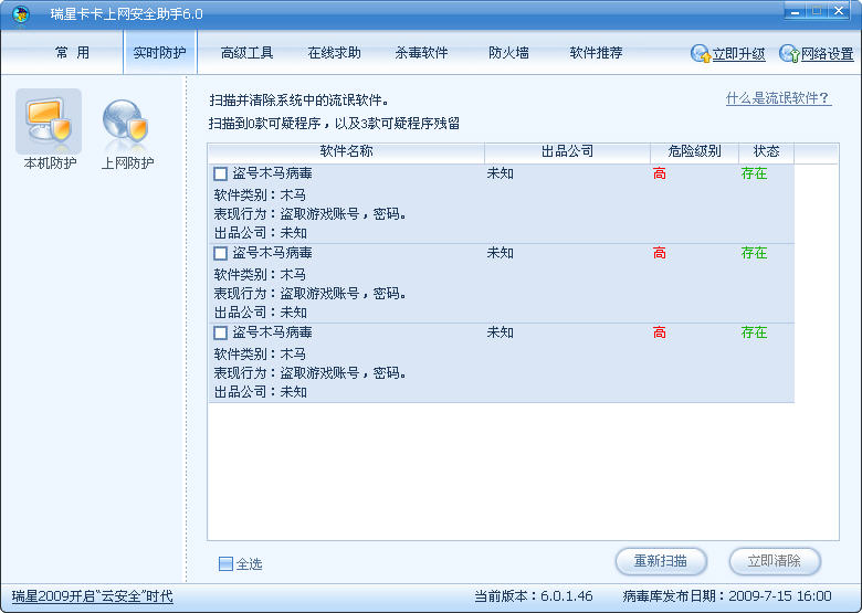 经过几天的测试,感觉瑞星的病毒查杀能力的确值得依赖。