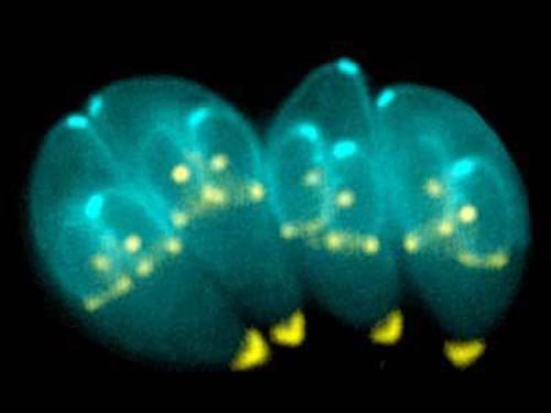 贾第虫的学名是“Giardia lamblia”,它是一种长有鞭毛的原生寄生虫。它主要生活在肠道内,会导致小肠感染,引起贾第鞭毛虫病。当它们留在人体内脏时,将会引起炎症和导致其他器官损害,降低内脏器官吸收营养物质,并导致腹泻。