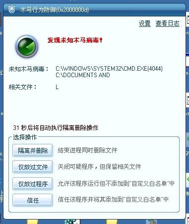 监控:感觉瑞星现在的监控做得比较宽松,有些已知的病毒运行,瑞星都不会有反应。